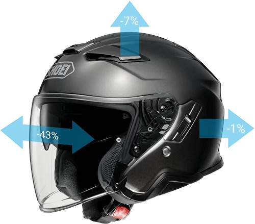 - Ценное время, проведенное в аэродинамической трубе SHOEI, позволило значительно улучшить вентиляционные характеристики J-Cruise II. Дополнительное впускное отверстие в верхнюю вентиляционную систему увеличило объем воздуха, поступающего в шлем, примерно на 30%. Кроме того, новая запатентованная конструкция верхнего воздухоотвода улучшила отвод горячего воздуха на 20%.