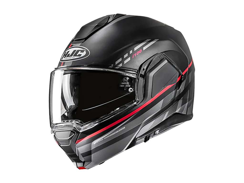 i100 привносит разнообразие в повседневный модульный шлем. Эта модель имеет полностью вращающийся подбородок, и прошел двойную омологацию P/J (открытый/закрытый шлем). Простой в использовании встроенный солнцезащитный визор (Dark Smoke) управляется клавишей в нижней левой части корпуса. Шлем выполнен из передового поликарбонатного материала и поставляется в 3 корпусах размерами от XS до 2XL для максимального комфорта и посадки. Он также спроектирован с оптимальным балансом и распределением веса для комфорта езды в течение всего дня. Этот шлем также подходит для систем Bluetooth SMART HJC (10B и 20B).
